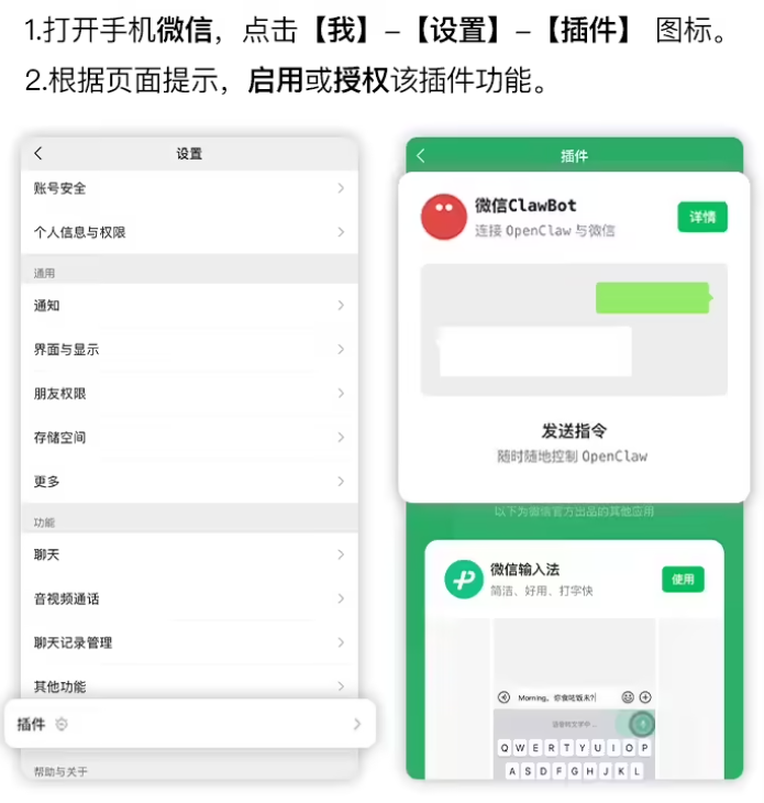 请在微信中,按如下操作,开启微信龙虾插件