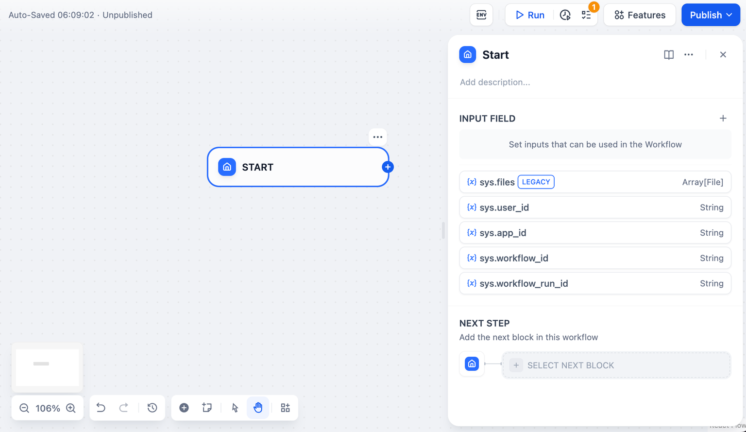 - 在 Workflow 类型应用内需确定唯一的 "end" 节点;