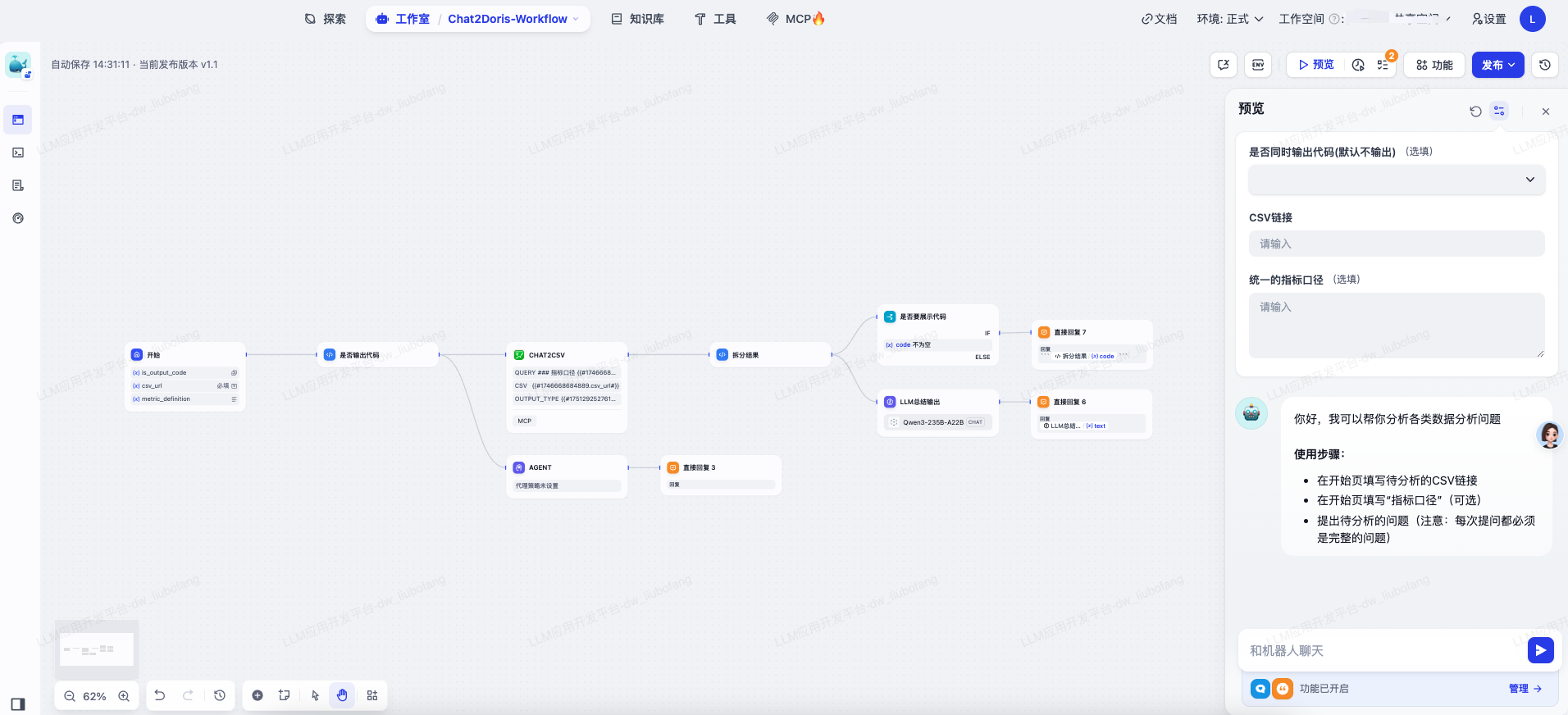 - 在已发布应用中运行或者通过 API 调用工作流;