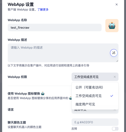 最核心就是设置WebAPP的访问权限,请根据需求选择隐私等级,限制谁可以访问
