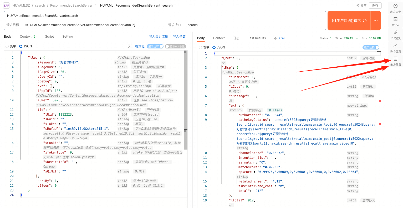 进入call平台 (opens new window),先确认自己的taf服务能在call平台正常调用,然后点击右侧“MCP配置”