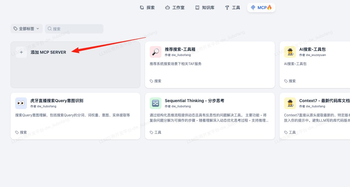 添加MCP到LLM平台,点击创建