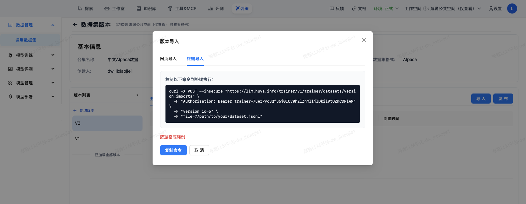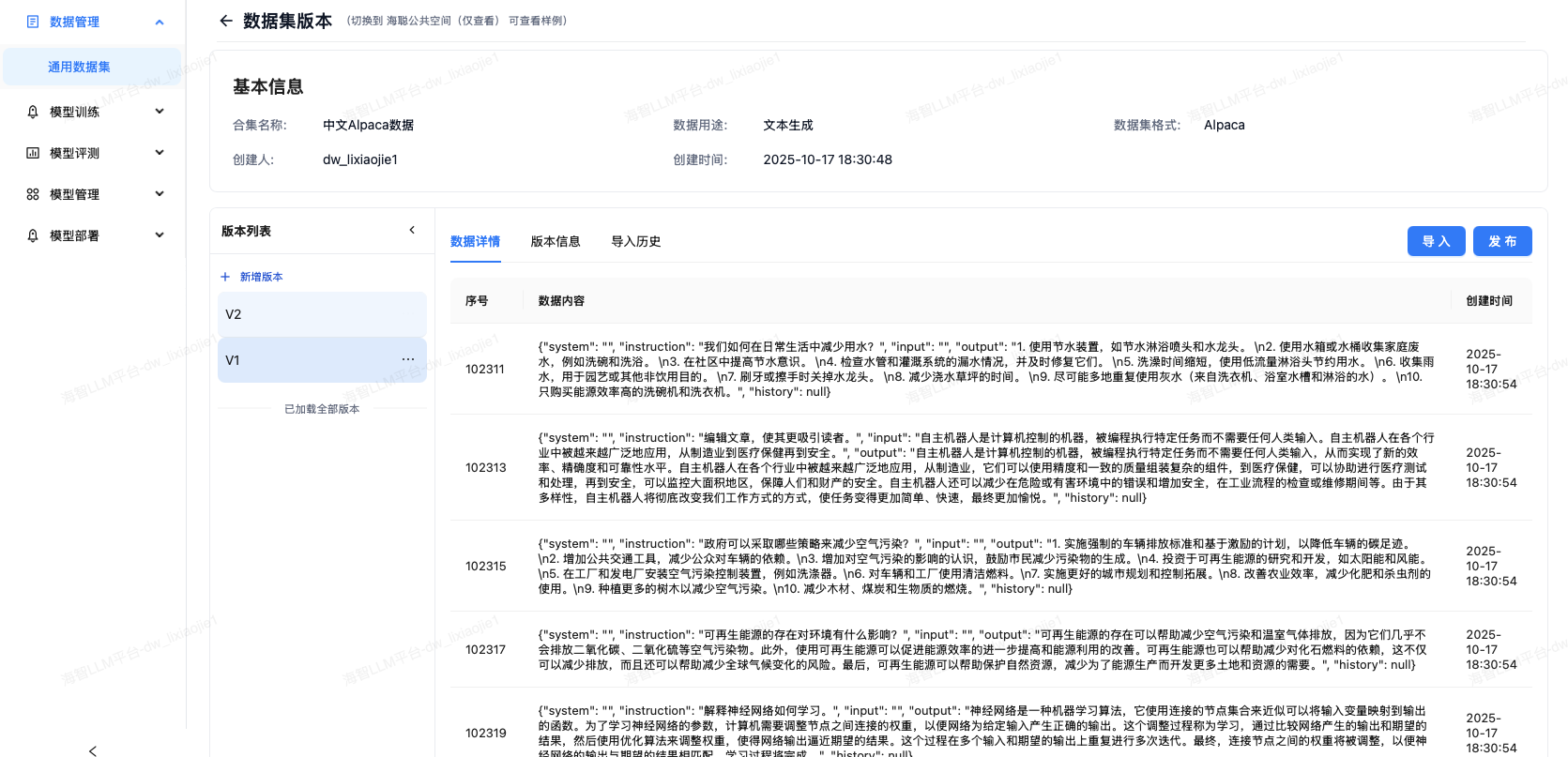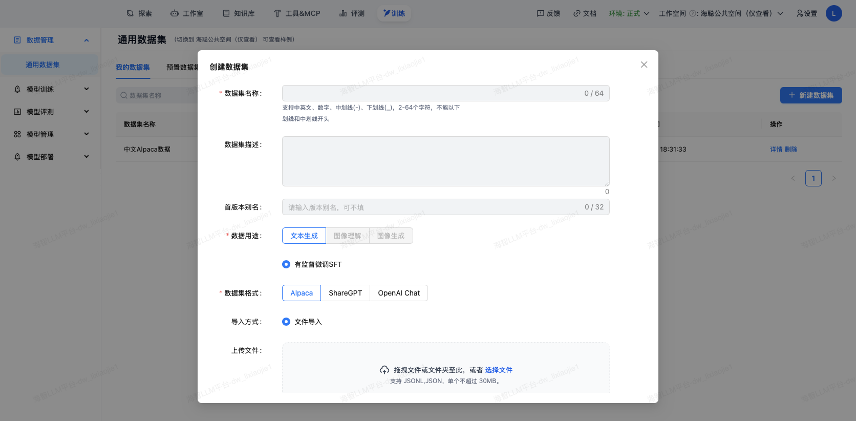 数据集是模型训练的基础,平台提供完善的数据集管理功能。