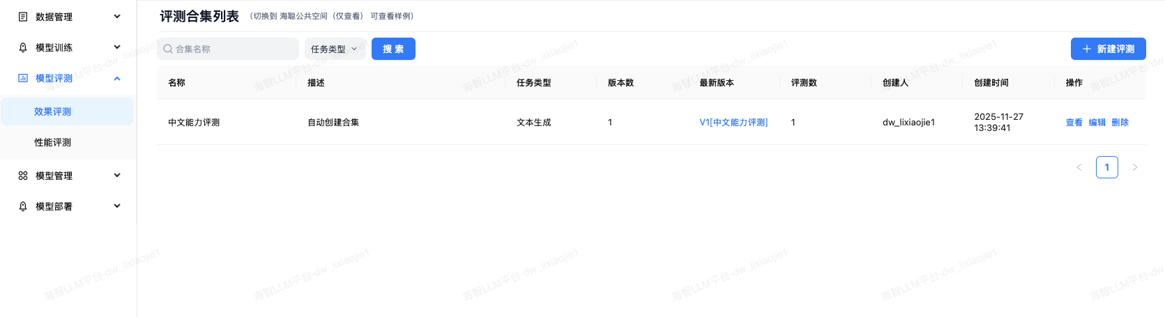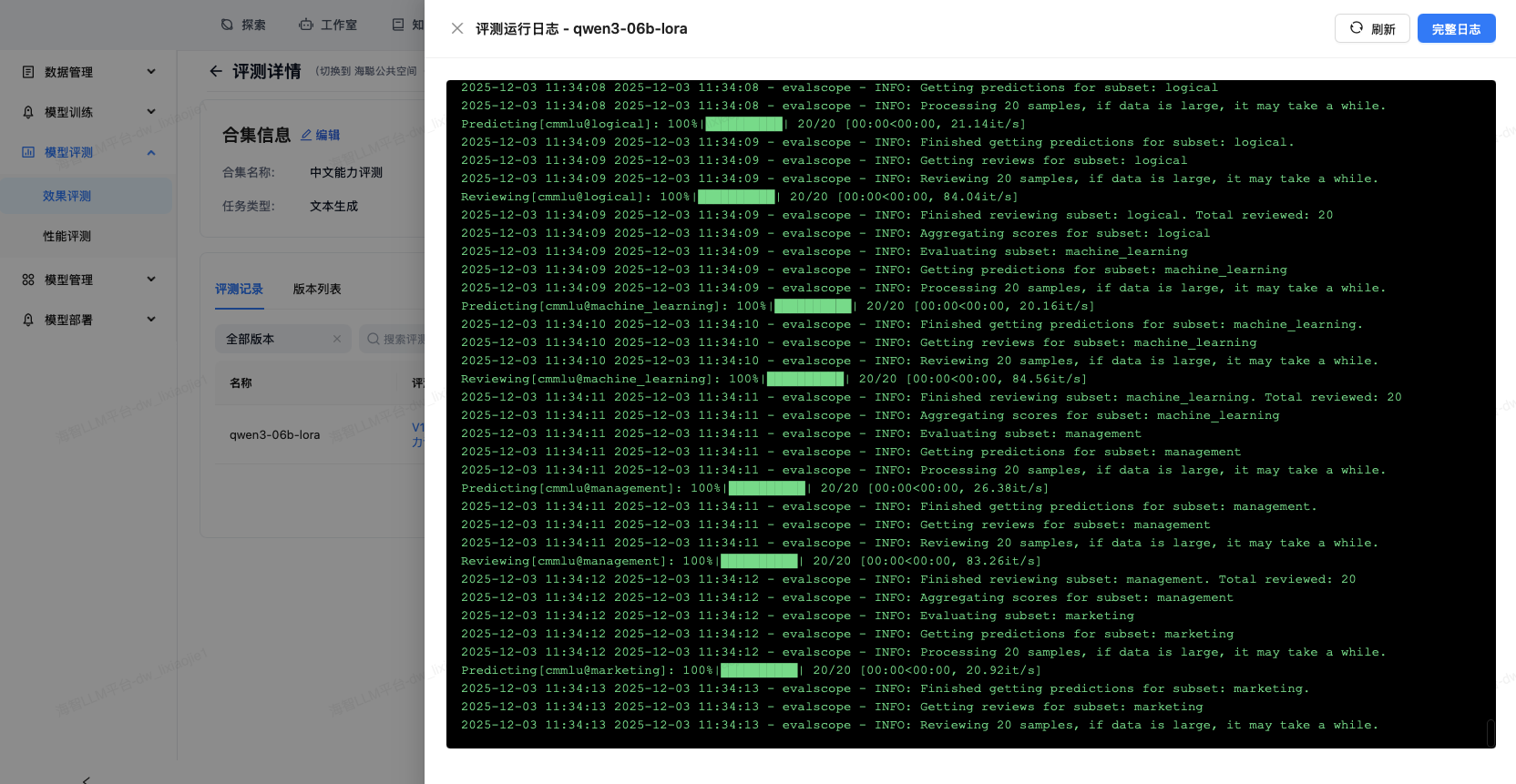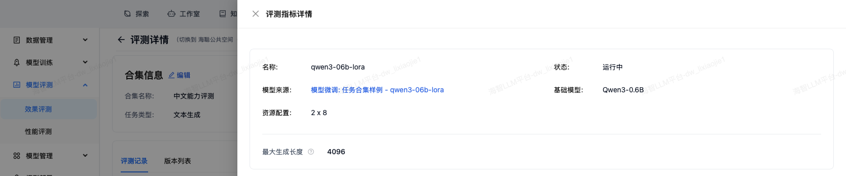 效果评测用于对训练任务以及我的模型进行效果评测,展示指标结果以及评测数据结果。