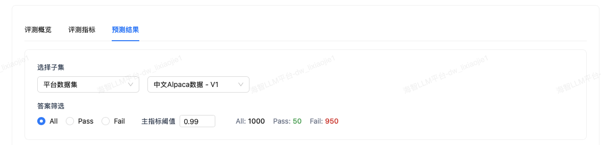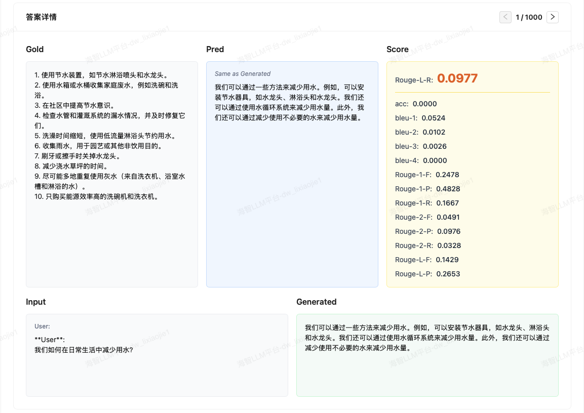支持数据集级别/子集级别的指标对比,以及具体预测结果的查看。